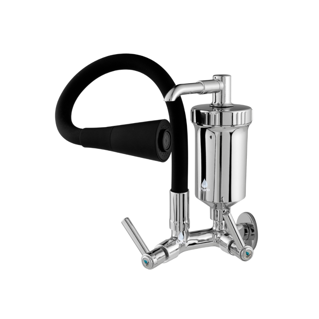 Torneira com Filtro Gourmet Flexível Cozinha Preta Parede c/ Ducha 2 Jatos 1/4 de Volta com Refil