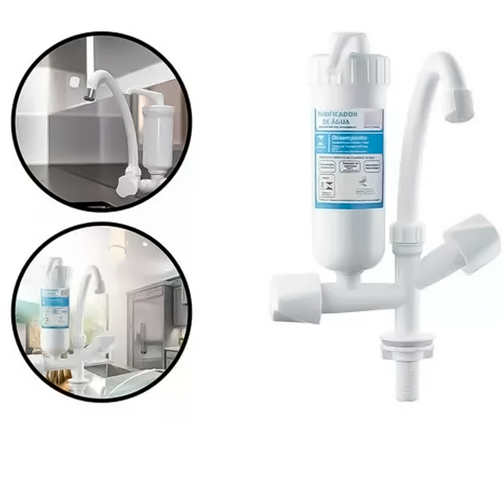 Torneira com Purificador HERC Branca Bica Móvel para Bancada – ABS Resistente