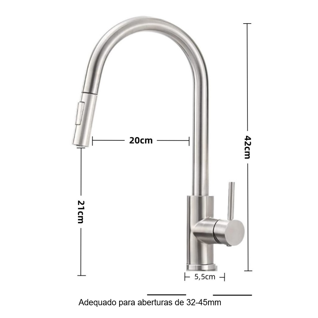 Torneira Gourmet Cozinha Mesa Bancada Misturador Monocomando Extensível Inox 304 Disponível em Aço Escovado, Preto Fosco, TWO cores para escolher, clique na cor que deseja de acordo com suas necessidades ! Material: Todo o material é feito de aço inoxidável, que é anticorrosivo e antiferrugem. Vale a pena comprar. Esta é uma torneira que pode ser usada por toda a vida. A Torneira Misturador Cozinha Gourmet Monocomando Extensível traz praticidade e design sofisticado. Com seu acionamento monocomando, você tem a opção da água quente e fria para lavar louças e as mãos a qualquer momento, na temperatura que achar mais confortável, além de ocupar menos espaço em sua bancada. Ainda possui bica giratória 360 graus e ducha extensível com comprimento de até 50 cm, proporcionando ainda mais flexibilidade durante o uso. - Torneira Gourmet é um produto novo, elegante e de excelente qualidade. Acabamento perfeito, oferece muita praticidade no o dia a dia. Com Misturador MONOCOMANDO de Água Quente e Fria, lhe proporciona a temperatura ideal. (Torneira não é Elétrica ). - A temperatura da água é trocada através do mesmo local de acionamento tanto para água quente quanto para água fria, devido ao sistema MONOCOMANDO, que por sua vez trás o conforto e economia de espaço na sua bancada, necessitando somente de 01 (uma) furação de diâmetro 35 mm -42 mm para a torneira misturadora ser instalada. - Com uma ducha pré-lavagem flexível, possui suporte em mola gerando sustentação e segurança. A Torneira Gourmet, conta com uma saída de água tradicional com mecanismo 1/4 de volta e bica giratória, com arejador em aço inox com tela garantindo um bom e arejado fluxo de água para as atividades mais simples do dia-a-dia. - Jato Areado ou Ducha ( 50 cm - mangueira ) para uma maior economia de água com movimento 360° e com maior pressão e facilidade na hora da higienização de alimentos e louças, atende todas as necessidades. - Torneira Gourmet é de Metal (cobre e zinco) tem 35 cm de altura, acabamento Escovado com tripla camada e alta resistência a corrosão, volante de alavanca trazendo mais leveza na abertura e fechamento. Seu movimento é de 360° podendo direcionar o jato d´água para diversas direções. Diferenciais do produto: - Acabamento de qualidade Acabamento em metal Aço escovado de alta durabilidade é o que a sua cozinha precisa. - Praticidade no acionamento Com um simples movimento de ¼ de volta é possível deixar a água na temperatura perfeita. - Ducha Extensível “Pull Down” Sua ducha móvel e extensível traz mais praticidade e mobilidade no uso, permitindo alcançar a todos os cantos da pia. - Adequado para qualquer aquecedor de água, incluindo aquecedor de água a gás, aquecedor de água elétrico, etc Especificações: * Bitola: 1/2" * Ducha Manual: fácil encaixe * Furação da Bancada: 35 mm-42mm - Pressão mínima: 7 m.c.a - Pressão máxima: 40 m.c.a Garantia do vendedor: 3 meses