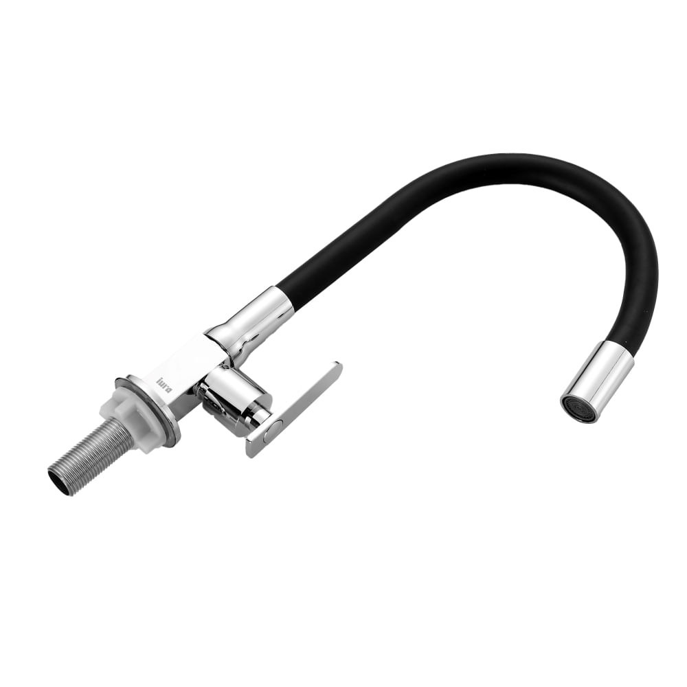 Torneira Cozinha De Mesa Bancada Flexível Iura Kalt Inox Cromada Preta