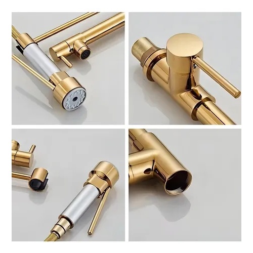 Torneira Cozinha Dourada Pia Gourmet Misturador Inox Luxo Acabamento Brilhante Yesop