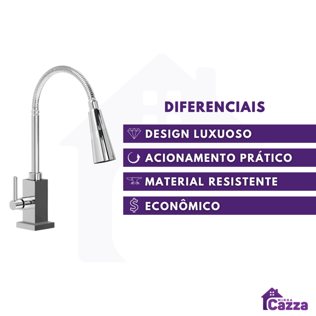 | Torneira Cozinha Flexível Quadrada Bancada Jato Duplo Cone Cromado ... este produto | R$ 114,99 | 11% | 4.8/5 | 5 |