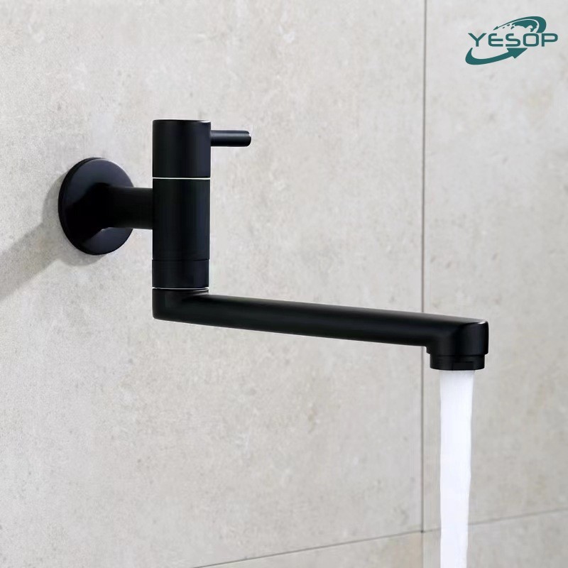 Torneira Cozinha Gourmet De Parede Bica Flexível Luxo Fosco Preto 25cm Yesop