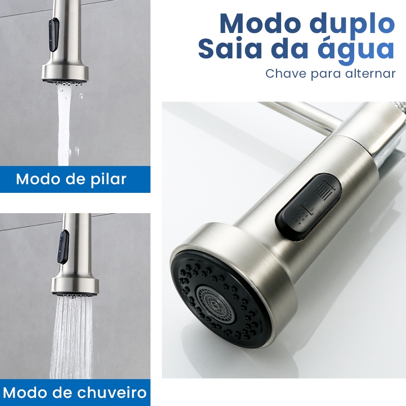 Torneira Cozinha Gourmet Monocomando Com Spray Extensor 304 Inox (Bancada) KGOLD