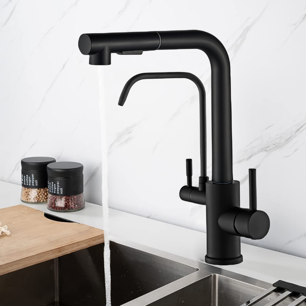 Torneira Cozinha Gourmet Para Filtros Com Bica Extensível Cor Preta/Prateado/Dourada Yesop