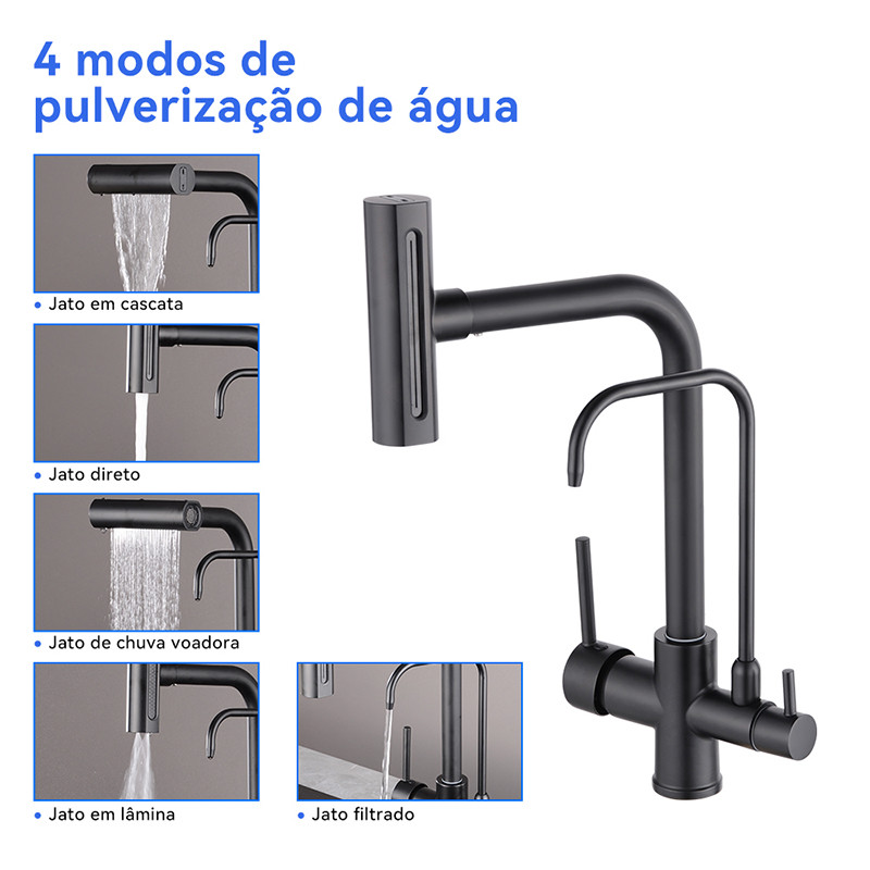 ⭐ Torneira Monocomando Cozinha em Aço Inox com Filtro ⭐ torneira monocomando cozinha | torneira com filtro cozinha | torneira cozinha monocomando ------ Leve mais praticidade, sofisticação e saúde para sua cozinha com esta torneira monocomando cozinha de alto padrão. Produzida em aço inoxidável 304, ela oferece excelente resistência à corrosão, ferrugem e desgaste do uso diário. Possui saída exclusiva para água filtrada, garantindo água mais pura para beber, cozinhar e preparar alimentos. ⚠ Filtro NÃO incluso – necessário utilizar filtro externo compatível. ----- 🔥 Principais Características ✔ Torneira cozinha monocomando – controle fácil com uma única alavanca ✔ Misturador de água quente e fria ✔ Torneira com filtro cozinha – saída independente para água filtrada ✔ Controle duplo: • Água quente/fria • Água filtrada separada ✔ Bica giratória 360° ✔ Design moderno estilo gourmet ✔ Ideal para cozinhas residenciais e profissionais 💧 4 Modos de Saída de Água Alterne facilmente conforme sua necessidade: ✔ Jato em cascata – lavagem suave ✔ Jato direto – limpeza pesada ✔ Jato tipo chuva – enxágue delicado ✔ Jato em lâmina – economia de água ➡ Mudança rápida com apenas um toque! ------ 📐 Dimensões • Altura total: 38 cm • Comprimento da bica principal: 28 cm • Altura da bica secundária: 21 cm • Comprimento da bica secundária: 13 cm • Largura da base: 16,5 cm • Diâmetro da base: 4,5 cm • Altura do cabeçote: 13 cm (Sujeito ao produto real,Medidas aproximadas) 🔩 Material ✔ Corpo em Aço Inoxidável 304 ✔ Antiferrugem ✔ Anticorrosão ✔ Livre de chumbo ✔ Acabamento escovado premium ✔ Cartucho cerâmico de alta qualidade ✔ Testado em mais de 500.000 ciclos ✔ Sem gotejamento ✔ Longa durabilidade 🚰 Sistema de Filtragem ✔ Saída exclusiva para água filtrada ✔ Mantém água potável separada da água comum ✔ Compatível com filtros externos padrão ❌ Filtro não incluso 🚿 Pressão mínima de água necessária Pressão mínima da água: 5mca (metros de coluna d’água) Pressão máxima da água: 20mca (metros de coluna d’água) Pressão ideal da água: acima de 6mca (metros de coluna d’água) ➡ Compatível com a maioria das instalações residenciais. ----- ❓ PERGUNTAS FREQUENTES P: Produto acompanha filtro? R: Não acompanha filtro, mas enviamos adaptadores para instalação. P: Precisa de aquecedor? R: Sim. A torneira não é elétrica, necessita aquecimento externo. P: Posso usar apenas com água fria? R: Sim, basta instalar um adaptador em “T”. P: Quantas entradas de água possui? R: São 3 entradas: ✔ Água fria ✔ Água quente ✔ Água filtrada P: A instalação é difícil? R: Não! Acompanha kit completo para instalação fácil. P: A bica gira? R: Sim! Possui rotação 360°. ----- 📦 Conteúdo da Embalagem ✔ 1x Torneira cozinha monocomando ✔ Mangueiras flexíveis ✔ Kit de instalação ✔ Adaptadores ❌ Filtro não incluso ---- 🌟 Benefícios ✔ Água filtrada direto da torneira ✔ Economia de água ✔ Controle preciso de temperatura ✔ Design moderno ✔ Fácil limpeza ✔ Valoriza sua cozinha ✔ Uso confortável no dia a dia ------ 🛒 Garanta já a sua! Transforme sua cozinha com mais estilo, praticidade e saúde! 👉 Clique em "Comprar Agora" e aproveite! ------