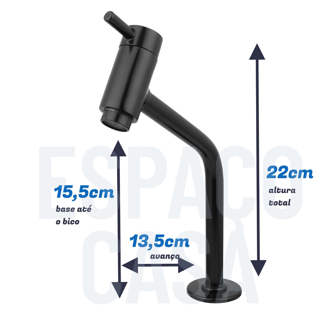 Tudo o que seu banheiro merece! Flexibilidade para facilitar a sua vida, ganhe tempo e precisão utilizando essa torneira de altíssima qualidade! Torneira Lavatório Banheiro Bica Baixa Metal com acabamento cromado *ATENÇÃO: INSTALAÇÃO de BANCADA* Material Resistente e Durável! TODA EM METAL de primeira qualidade! Oferece acionamento ultra rápido leve e macio, com perfeita vedação impossibilitando qualquer vazamento. FABRICAÇÃO PRÓPRIA Produto com Garantia Contra Defeito de Fabricação Torneira Bica Link Preta Dimensões do produto: Altura da base até parte debaixo do bico: 15,5cm Altura Total: 22cm Avança: 13,5cm Sistema de Vedação em 1/4 de VOLTA Ou seja até 50% de economia de agua! Bitola de 1/2 Torneira em Metal PRETO FOSCO de altíssima qualidade Os produtos são fabricados e testado debaixo das normas técnicas. Estamos aguardando a sua compra Todos os produtos anunciados estão a pronta entrega em nosso centro de distribuição só aguardando a sua compra para serem despachado. Agradecemos a sua visita e aguardamos a sua compra! Espaço Casa - Fabricante Nacional de Torneiras