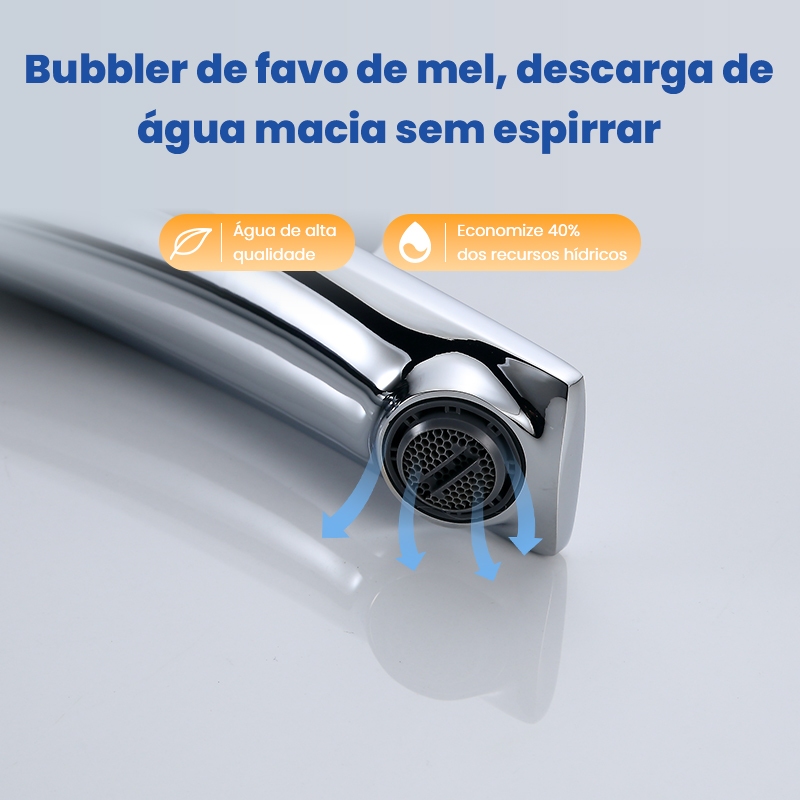 Esta torneira monocomando para banheiro é perfeita para quem busca a combinação perfeita de praticidade e conforto, tudo em um estilo moderno e sofisticado. O cartucho com válvula monocomando permite o ajuste preciso do fluxo e da temperatura da água com um único controle. O arejador não só economiza água, como também evita respingos, proporcionando maior conforto. A alavanca giratória garante abertura e fechamento suaves e opera perfeitamente em baixas e altas pressões. Especificações: Marca: KGOLD Modelo: W-62G Acabamento: Cromado Dimensões: Altura do Produto: 28,5 cm Altura do Bica: 23 cm Material: Aço Inoxidável Pressão: 3 a 40 mAh Misturador: Sim (água quente e fria) Sistema: Controle único Bica giratória: Não Expansível: Não Filtro de entrada de água: Não Aplicação: Banheiro Tipo de Montagem: Bancada Diâmetro da Bancada: 3,5 cm Alça: 3 cm Peso: 1280 g Itens Inclusos: Torneira Mangueira de Conexão Acessórios de Instalação Garantia do Vendedor: 3 Meses