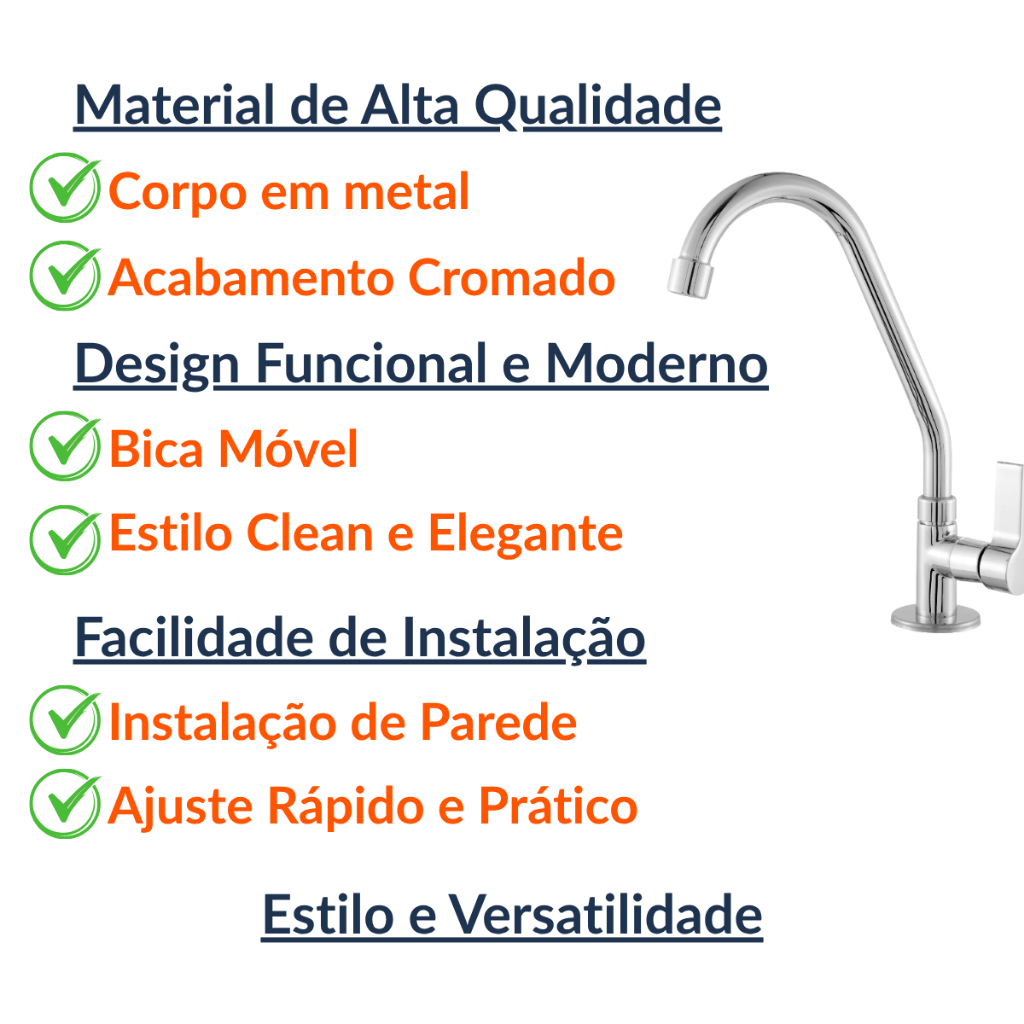 Torneira de cozinha bancada 1168 Metal & Inox C70 Bica Movel Luxo