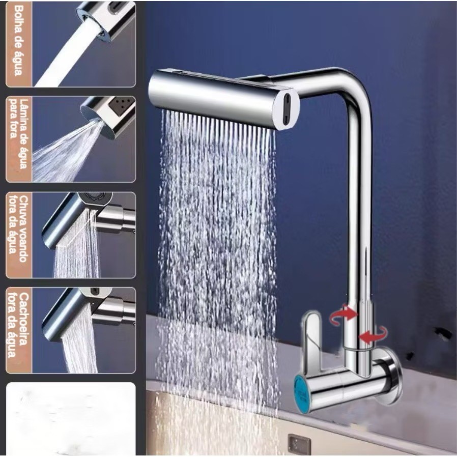 Torneira De Cozinha Cascata 360 Rotação 4 Funções Bocal