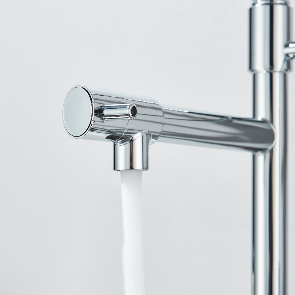 Torneira de cozinha de aço inoxidável com um manípulo, com bico extensível, para água fria e quente, modelo de luxo