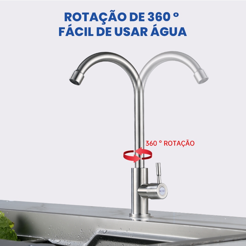 Torneira de cozinha de aço inoxidável, giratória, preta/prateada KGOLD
