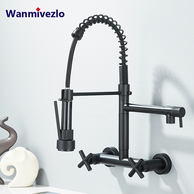 Torneira De Cozinha De Mola Montada Na Parede Com Alças Duplas Água Quente E Fria