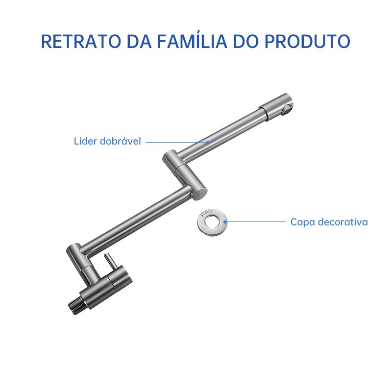 Torneira De Cozinha De Parede Dobrável Em Aço Inoxidável De 1/2 Polegada De Frio Simples Cor Prata Escovada
