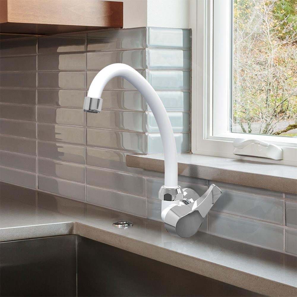 TORNEIRA DE COZINHA DE PAREDE PREMIUM - BRANCA CROMADA