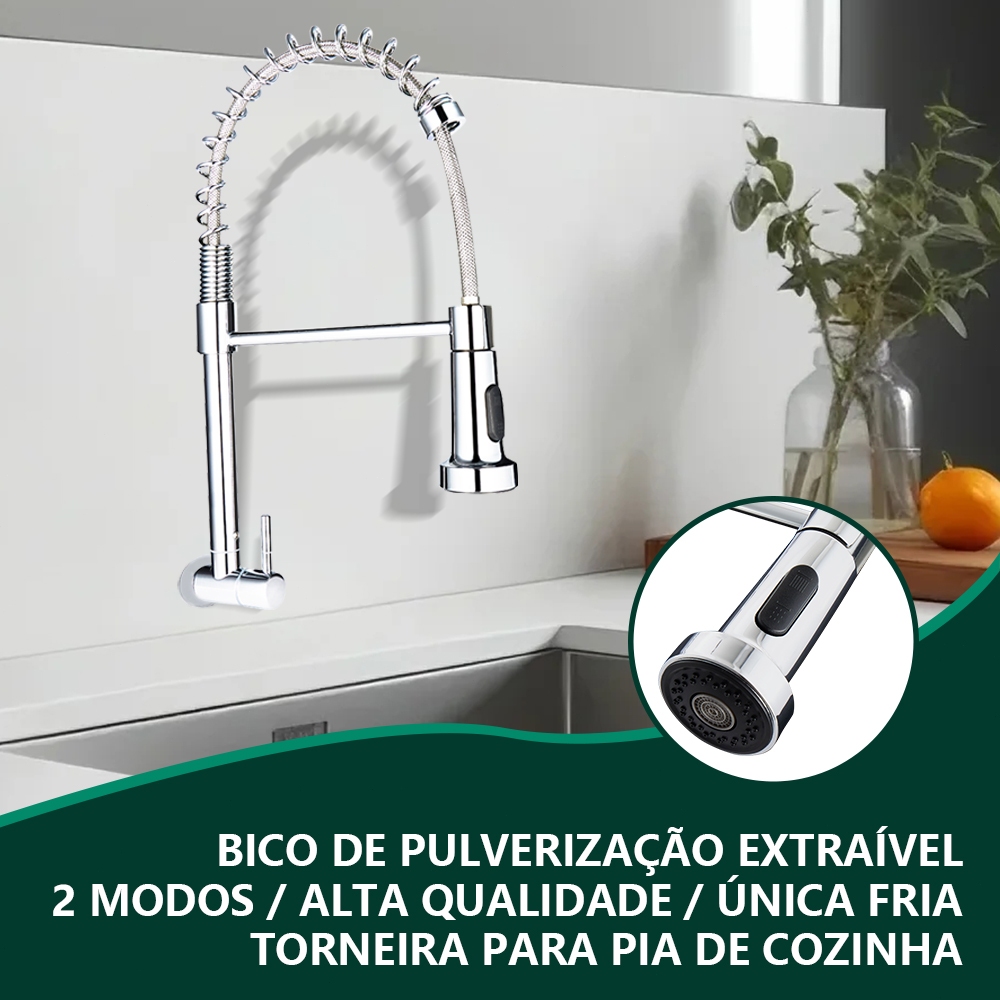 Torneira De Cozinha Na Parede De Aço Inoxidável Com Mola Removível Cor Prata Escovada Yesop