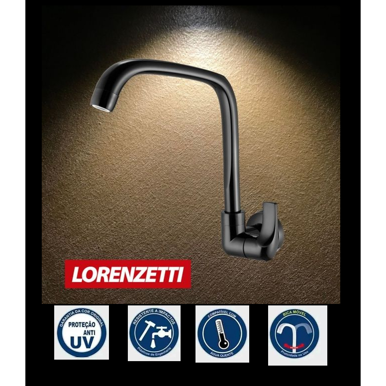 TORNEIRA DE COZINHA PARA BANCADA OU PAREDE MODELO FITT COM BICA MÓVEL 1/4 DE VOLTA NAS CORES BRANCO OU PRETO LORENZETTI