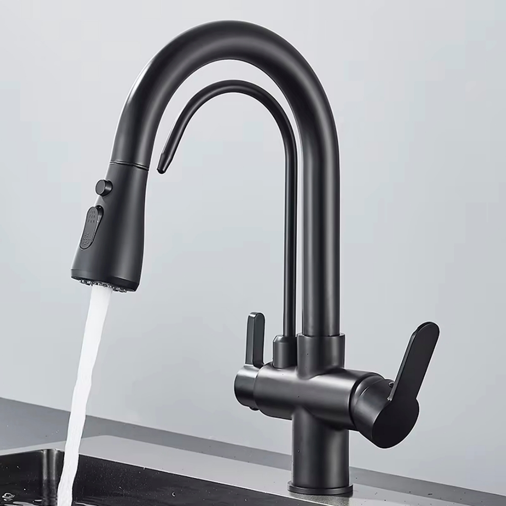 Torneira de cozinha Torneira de água pura Preto mate Torneira de água potável quente e fria Torneira misturadora destacá