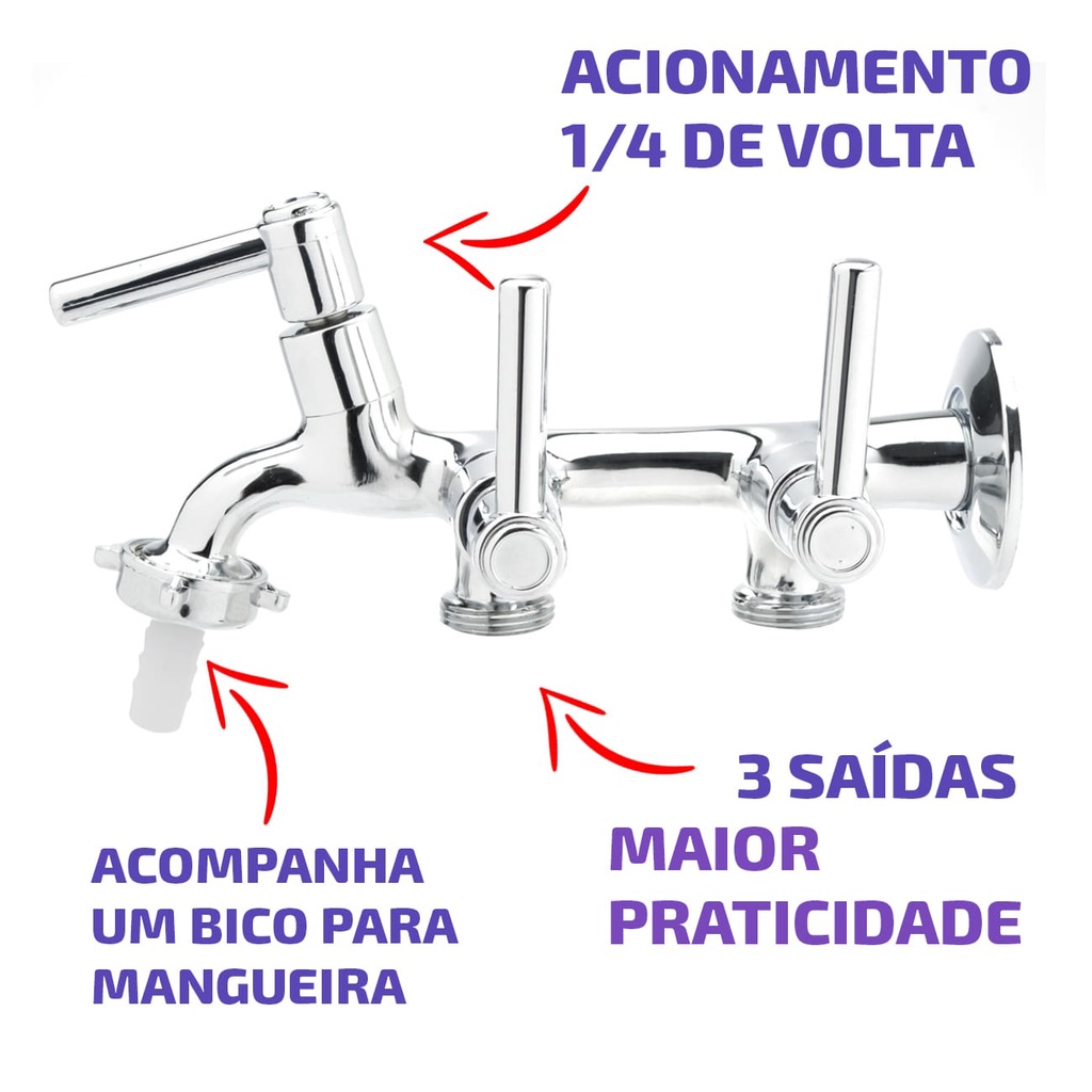 Torneira de Metal Com 3 Saídas Tanque e Maquina de Lavar C72