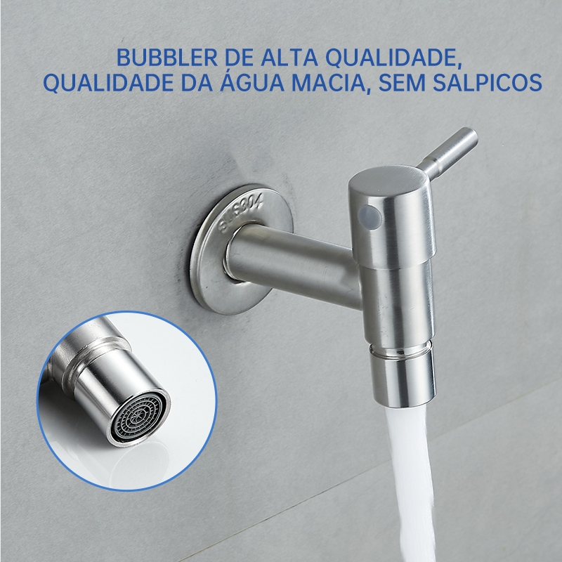Torneira de Parede Inox 304 para Máquina de Lavar e Tanque – Registro 1/4 de Volta, Alta Durabilidade