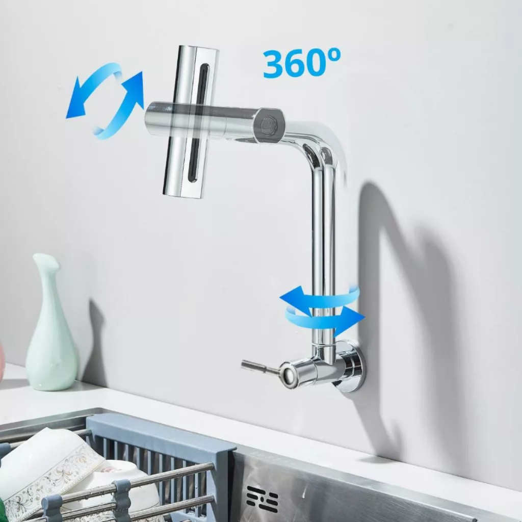 Torneira de Parede p/ Cozinha Cascata 360° - 4 Funções, Bocal de Alta Pressão e Misturador p/ Pia