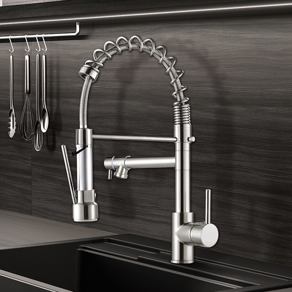 Torneira de pia de cozinha de luxo misturador monocomando quente e frio prata escovada Yesop