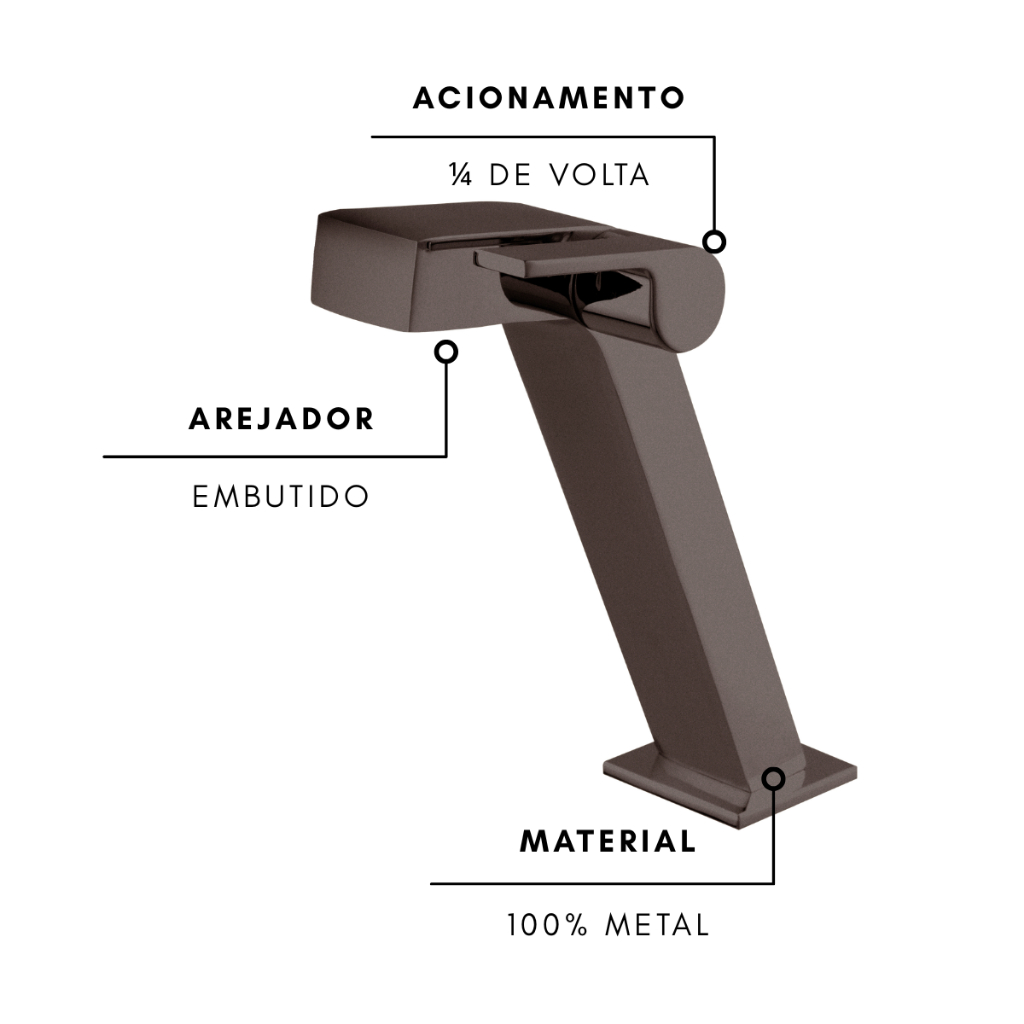 Torneira de Pia para Banheiro Trend Luxo Aço Corten ¼ de Volta