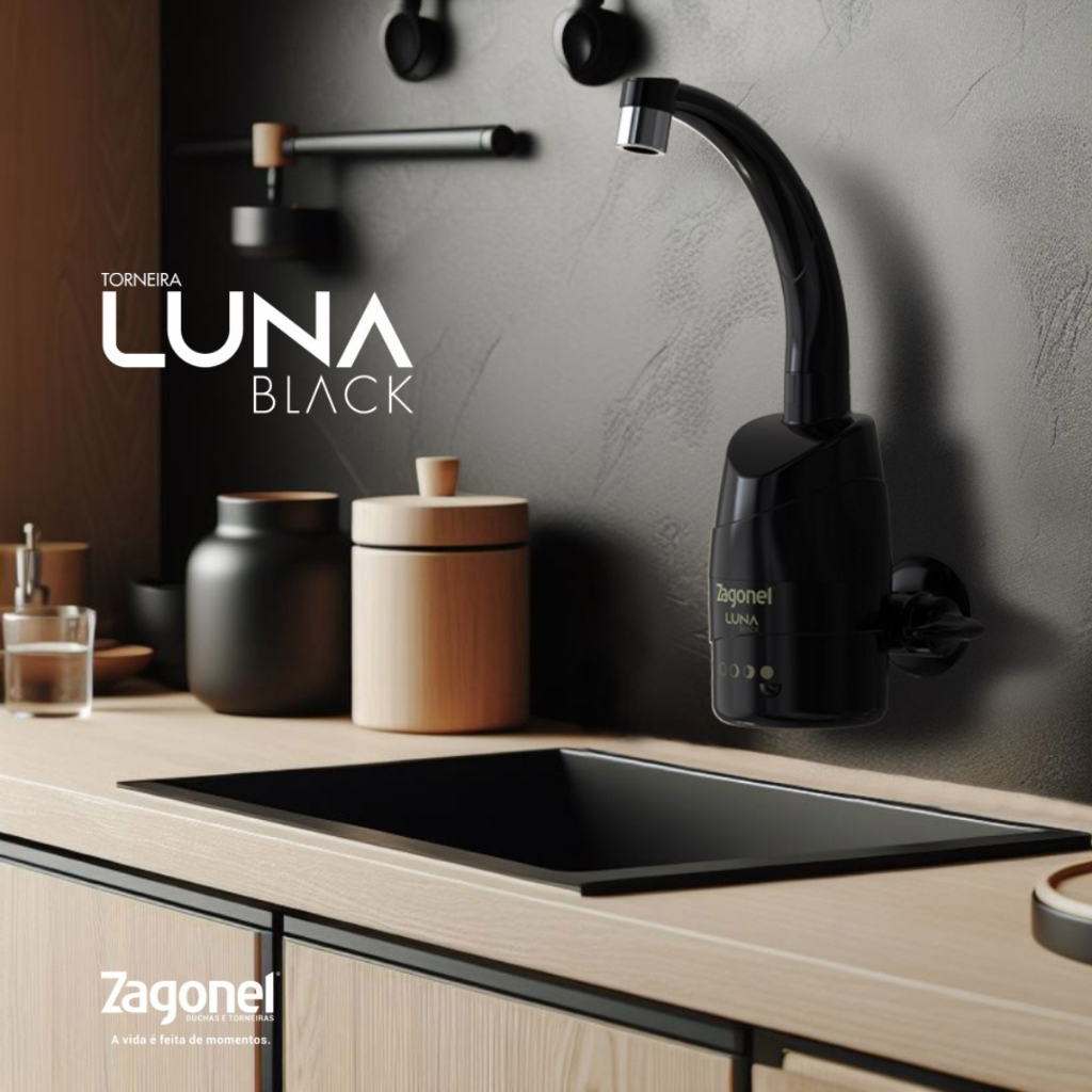 Torneira Elétrica Luna 4T Preta de Parede Zagonel 220V e 110v