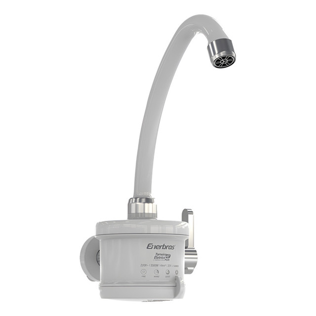 Linhas agradáveis combinadas com resistência, qualidade e funcionalidade definem a Torneira Elétrica Enerbras. Para maior facilidade de uso, conta com bica elevada e volante anatômico, além de possibilitar ajuste para quatro temperaturas. Maior higienização e secagem rápida de louças; Economia devido ao acionamento com baixa vazão de água; Bica móvel com arejador Volante com 1/4 de volta com registro cerâmico. Marca: ENERBRAS Largura: 268mm Altura: 131mm Comprimento: 288mm Peso: 0,421kg Linha: TORNEIRA ELÉTRICA 4T PLUS Tipo: NACIONAL Eficiência Energética: 95% Pressão Mínima de Funcionamento: 2m.c.a. 20kPa Pressão Máxima de Funcionamento: 40m.c.a. 400kPa Tensão Nominal (VOLTS): 220V Potência (WATTS): 5500W Compatívei com IDR SIM