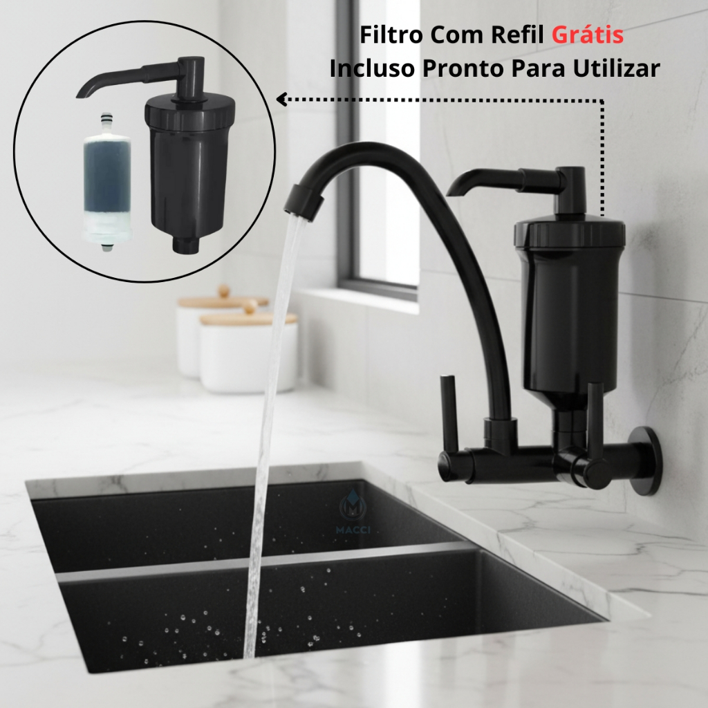 | Torneira Filtro de Cozinha de Parede Preta Bica Móvel ABS Bica Alta... este produto | R$ 59,90 | 9% | 4.8/5 | 10 |