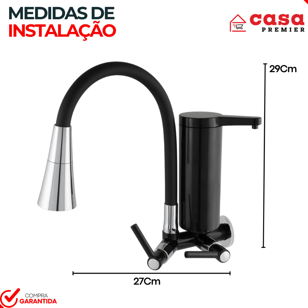 Torneira Filtro Gourmet Preta Parede Pia Cozinha Cano Flexível Pró Saúde