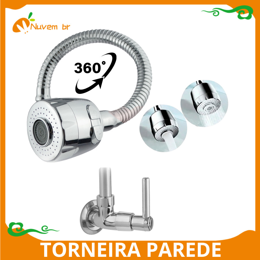 Torneira Flexível de Parede/Bancada WG08 para Cozinha com Chuveirinho Duplo Jato Cone Inox Luxo Metal Gourmet WG08