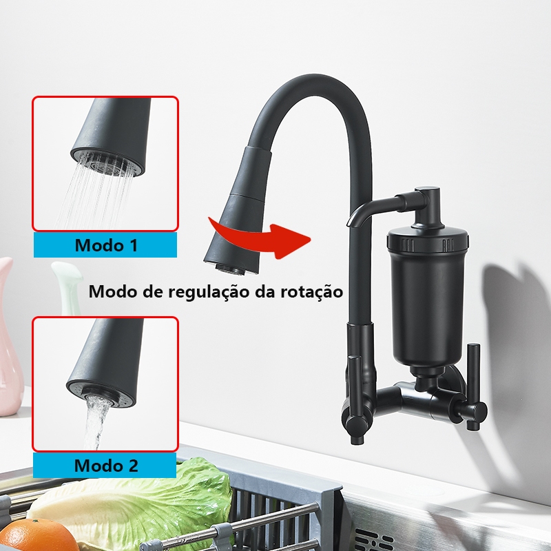 Torneira Flexível Gourmet Da Cozinha Com Filtro Fino Para A Luxuosa Parede Preta/Cromado