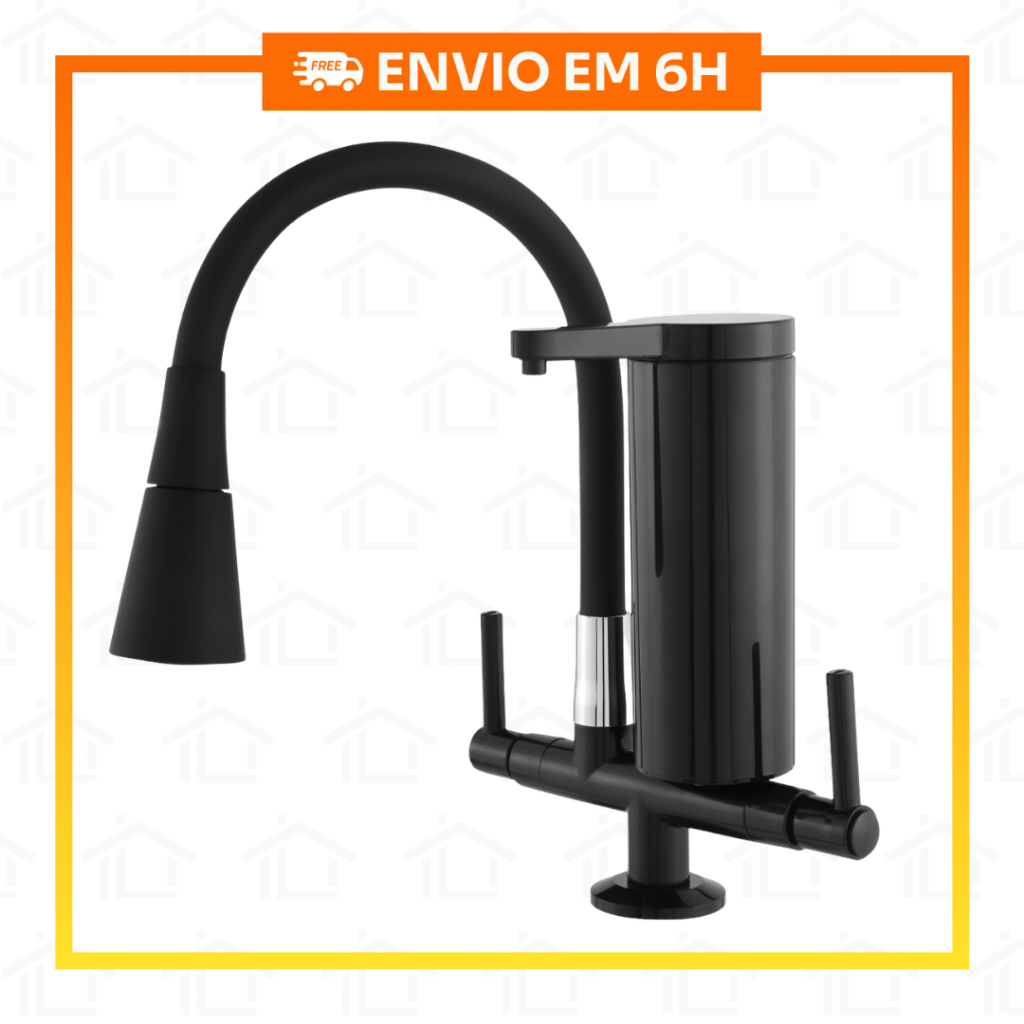 Torneira Gourmet com Filtro Integrado Preta Flexível 360° Bancada Luxo Cozinha