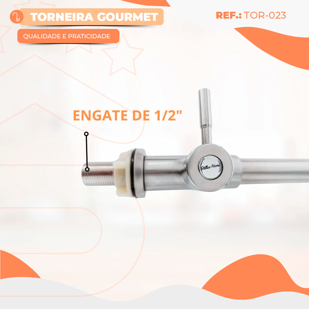 TORNEIRA GOURMET COZINHA AÇO INOX ESCOVADO ALTA 37CM LUXO