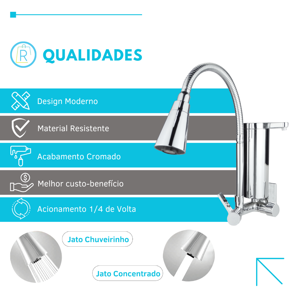| Torneira Gourmet Cozinha Com Filtro Parede Pia em Metal Dois Jatos ... este produto | R$ 125,99 | 10% | 4.7/5 | 20 |