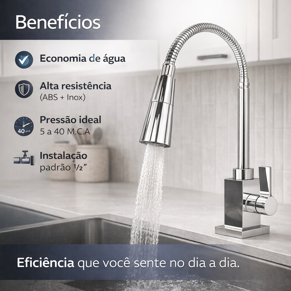 Torneira Gourmet Cozinha Flexível Inox Cromada 1/4 Volta Duplo Jato 360° Bancada Luxo