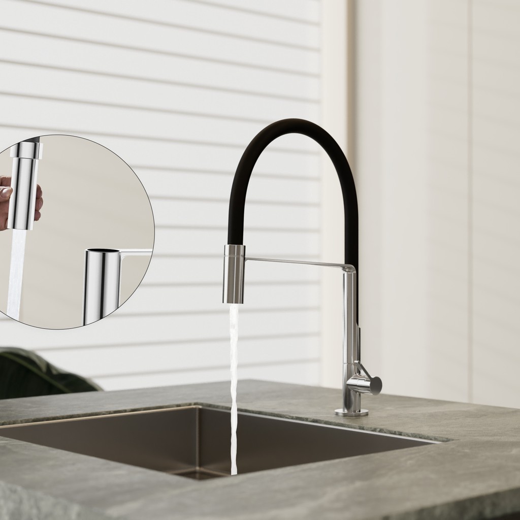 Torneira Gourmet de cozinha fria com bica flexível e suporte - cromado/preto/cinza