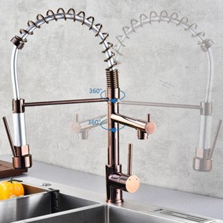 Torneira Gourmet de Cozinha Monocomando com Mola Extensível e Saída Dupla em Ouro Rosé Elegante Yesop
