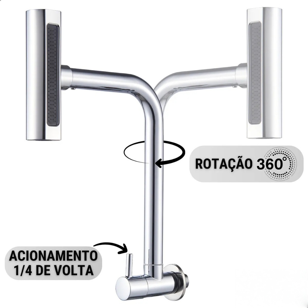 Torneira Gourmet De Cozinha Para Parede 4 Jatos Rotativa Cor Prata Escovado Yesop