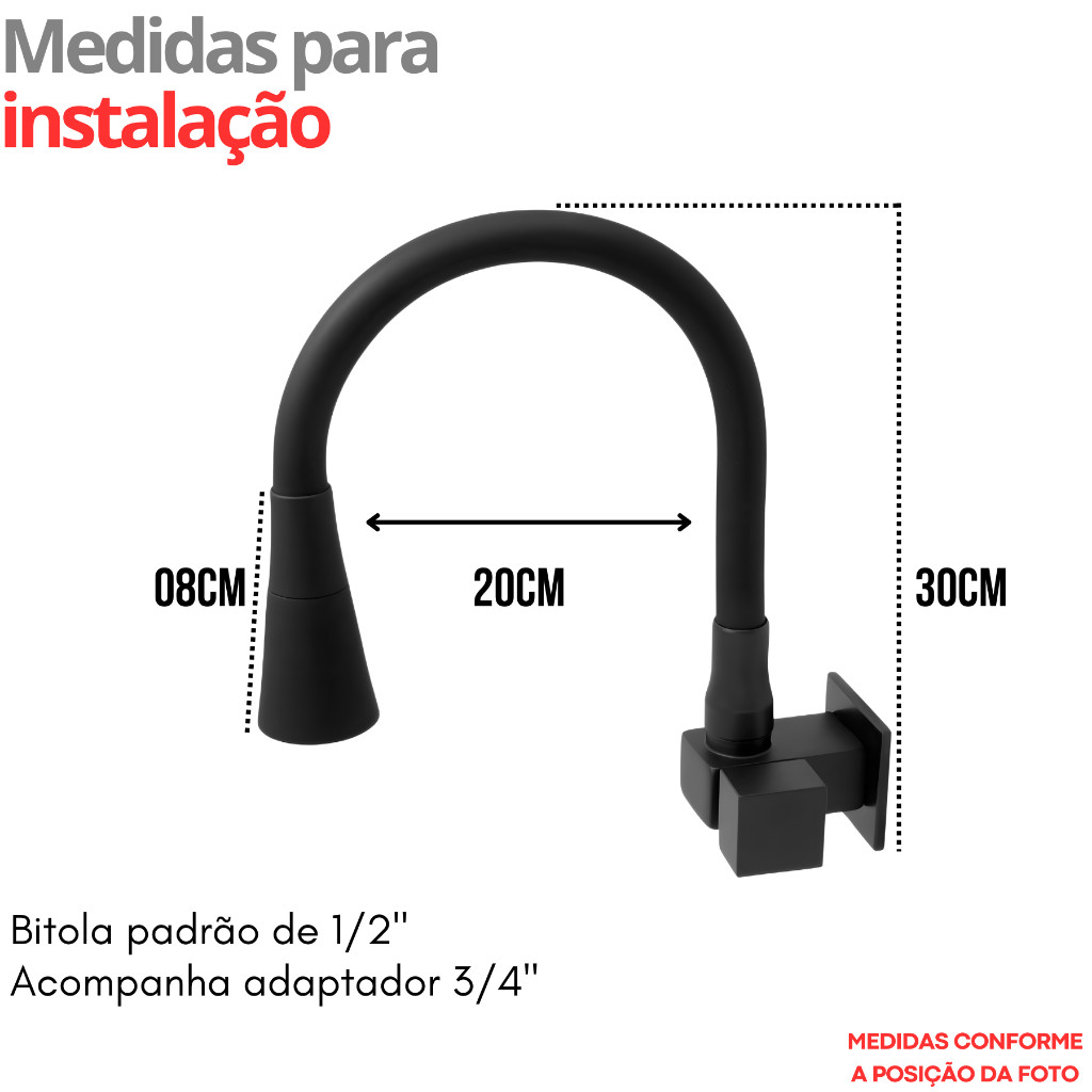 Torneira Parede Gourmet Square Quadrada Cano Color Plus Flexível e Cone Preto Fosco 2 Jatos 4167 C 100 SQUARE BLACK Tubo de Silicone Flexível com Cone Preto Jato Duplo - Jato Contínuo: Ideal para as funções rotineiras que faz com que a água caia continuamente. (Enxaguar Louças, encher recipientes de água) - Jato Ducha (Chuveirinho): Ideal para se lavar frutas, verduras, feijão, resíduos de alimentos nos pratos e panelas e etc. Como mudar de função? Através de uma simples rotação na bica (Cone) da torneira. - Melhor acabamento do mercado. - Material Resistente e de Alta Durabilidade. - Preço imbatível. - Envio imediato em horário Comercial. - Cromo 4 camadas em Salt Spray. - Pintura Eletrostática Profissional (Preto) - Não enferruja, não descasca, não oxida. - Empondera seu ambiente, proporciona praticidade às funções rotineiras. ESPECIFICAÇÕES TÉCNICAS DO PRODUTO. Torneira Gourmet Flexível instalação em PAREDE. - TAMANHO DO CANO: 50 CM (COMPRIMENTO TOTAL E PODE SER AJUSTADO CONFORME DESEJAR). - MATERIAL: 100% METAL (alta resistência) - ACABAMENTO: DESIGN SOFISTICADOS E DE ALTO PADRÃO. - BITOLAS: 1/2 POLEGADA INSTALAÇÃO. - BITOLA CANO: 3/4, PROPORCIONA GRANDE FLUXO DE ÁGUA. - GARANTIA: 90 DIAS. Acompanha o Produto: 01 Torneira Gourmet Flexível 2 Jatos Preto Fosco 01 Canopla Acabamento Inox Preto Fosco 01 Bucha de Redução 3/4. ------------------------------------------------------------------------------------------ - ATENÇÃO PARA OS DADOS DE ENTREGA: - Confira o seu endereço de entrega cadastrado, não alteramos endereços após a compra.