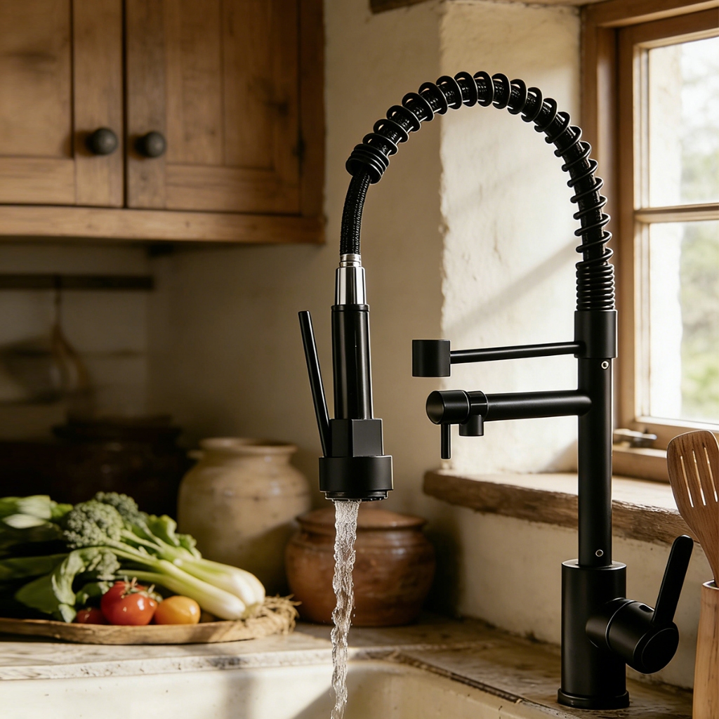 Torneira Gourmet 50cm com Misturador Monocomando Preta de Bancadabelccatgm -Instalado na bancada do dissipador Bem-vindo ao little shop Esta é a torneira instalada na bacia que suporta água fria e quente com rotação de 360 graus Características -Controle de fluxo com alavanca única -Design com acabamento duplo para serviços pesados -Cabeçote de pulverização pull-down de dupla função com encaixe magnético -Bicos de borracha de fácil limpeza evitam o acúmulo de água dura -Aerador Neoperl de alto desempenho e baixo fluxo -Acabamento superior resistente à corrosão e à ferrugem -Garantia vitalícia limitada Especificações: -Altura da torneira: 17,7" (45cm) -Alcance da bica: 8" (20cm) -Altura da bica: 15 cm (6") -Giro da bica: 360° -Fluxo de água: 1,8 galão -Requisito de tamanho do furo da torneira: 1.3"-1.7" (3.3-4.5cm) -Espessura máxima do convés: menos de 4 cm (1,5") -Comprimento das mangueiras de entrada de água: 23,6" (60 cm) -Acabamento: cromo polido CONTEÚDO DA EMBALAGEM: -Um misturador de torneira -Mangueiras padrão de abastecimento de água quente e fria -Acessórios de montagem