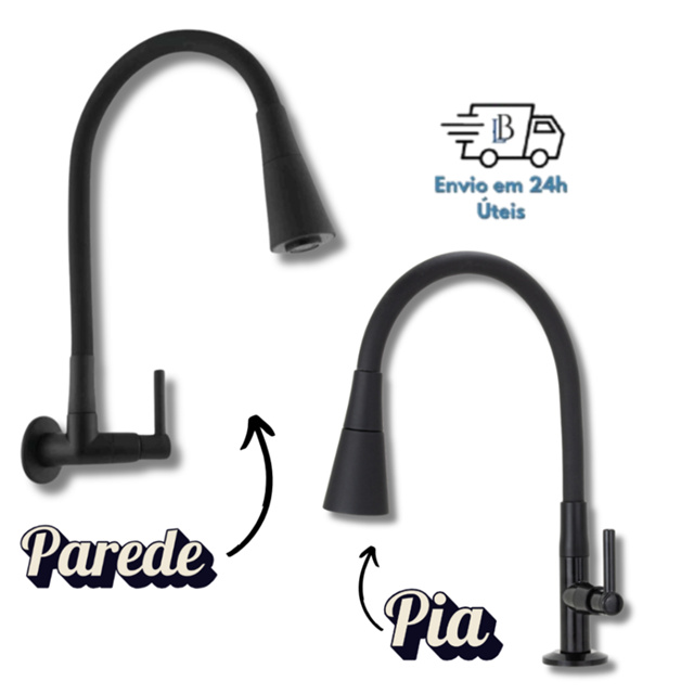 | Torneira Gourmet Parede Pia Cozinha Preta Flexível 2 Jatos 1/4 de V... este produto | R$ 29,98 | 63% | 4.9/5 | 498 |