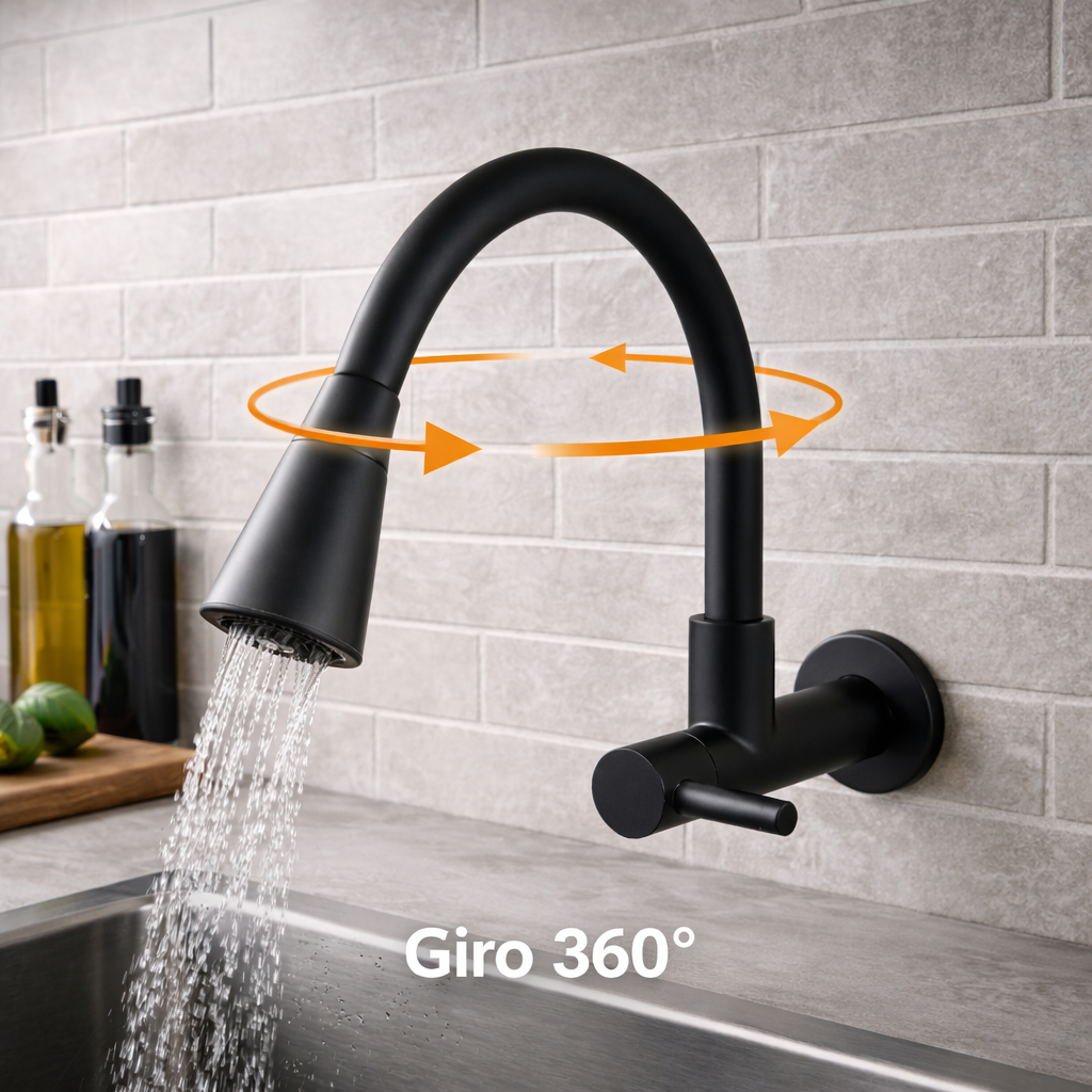 Torneira Gourmet Parede Preta 360° Cozinha Flexível