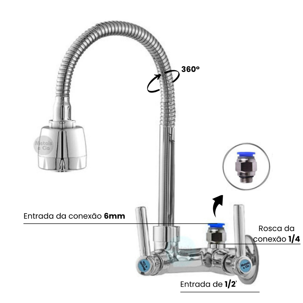 | Torneira Cozinha Parede Bica Móvel 100% METAL Lacqua | R$ 49,90 | — | 4.8/5 | 100 |