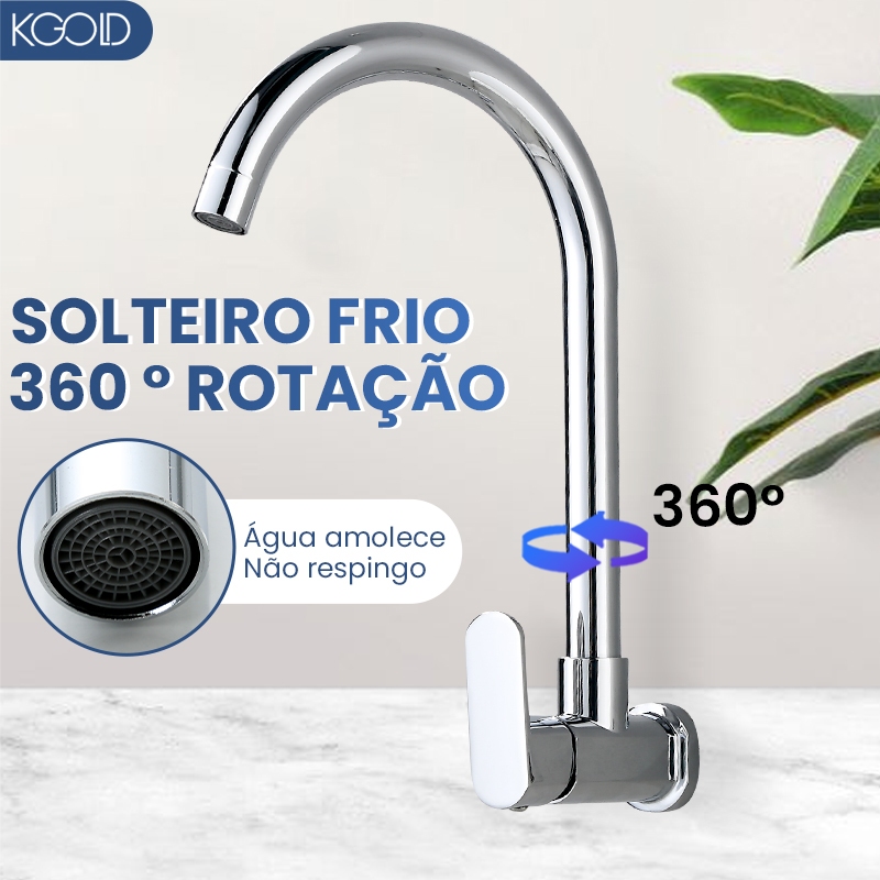 Torneira Inox Para Cozinha Giratória Longa de Parede KGOLD