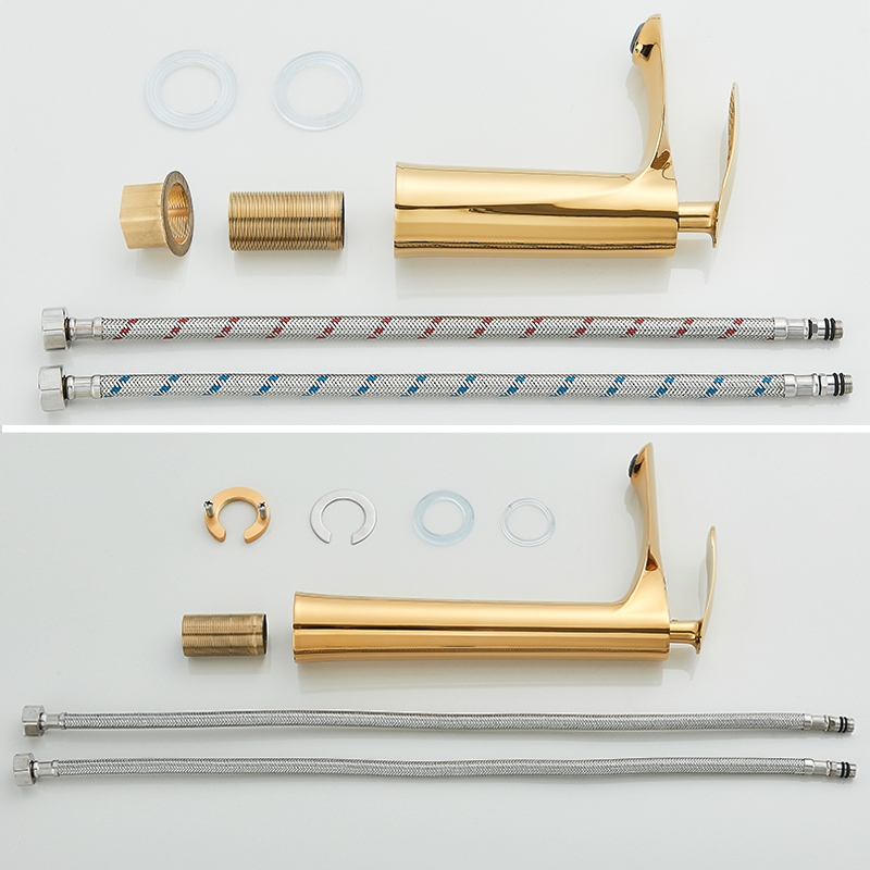 Torneira Lavatório Banheiro Luxuosa Dourada,Inox Bancada Torneira água Quente E Fria 30cm/18cm