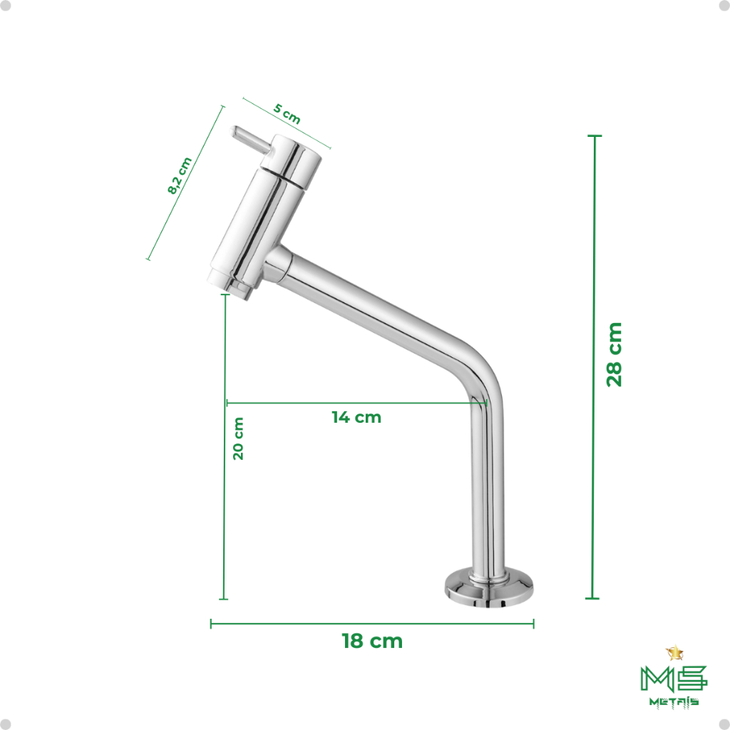 *** NOSSOS MATERIAIS ESTÃO A PRONTA ENTREGA - JA EMBALAOOS EM NOSSO DEPOSITO **** A Torneira de Bica 45º Alta possui um design elegante e prático perfeito para deixar banheiros e lavabos mais modernos. Seu acabamento é fabricado em ligas de cobre, ela possui durabilidade e alta resistência à corrosão e oxidação, além de preservar seu brilho por muito mais tempo. Ela possui ¼ de volta e conta arejador econômico que insere partículas de ar em seu jato, assim, regulando a vasão da água. == Especificações Técnicas== -Altura - 28cm -Largura - 20cm -Altura bico - 20cm -Comprimento da rosca: 5 cm. - Material: ABS, altamente resistente. -Acabamento: Brilhante. -Aplicação: Cubas de sobrepor e apoio. - Sistema de Acionamento ¼ de volta com pastilhas cerâmicas. - Controle de vazão através do arejador. - Fácil instalação e manuseio. 01- Valvula lavatorio 7/8 em ABS cromada