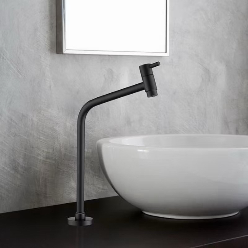 Torneira Link Redonda 45° Preta Toda em Metal para Cuba de Banheiro