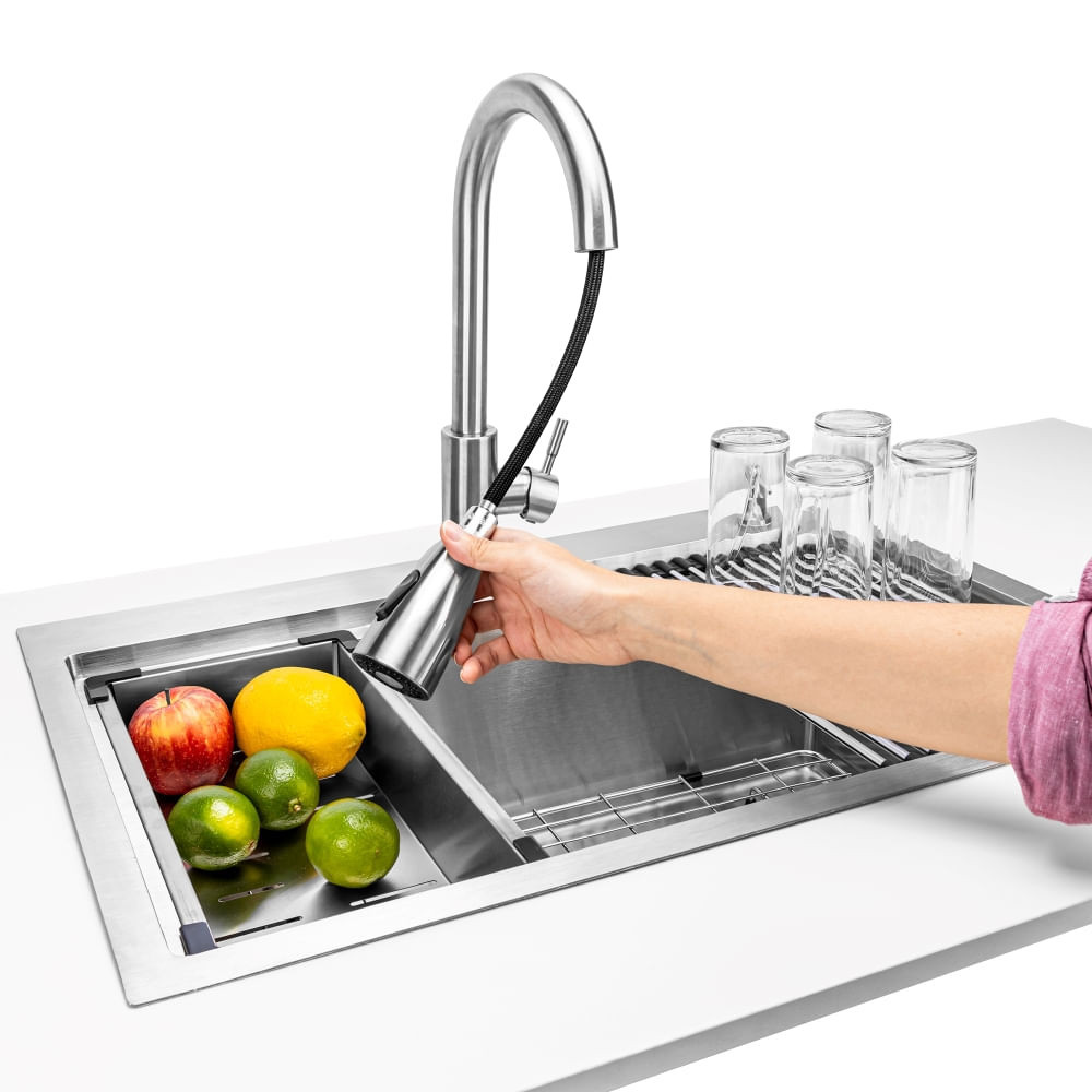 Torneira Misturador Monocomando Cozinha Extensível Iura Wass Quente E Frio Inox Escovado